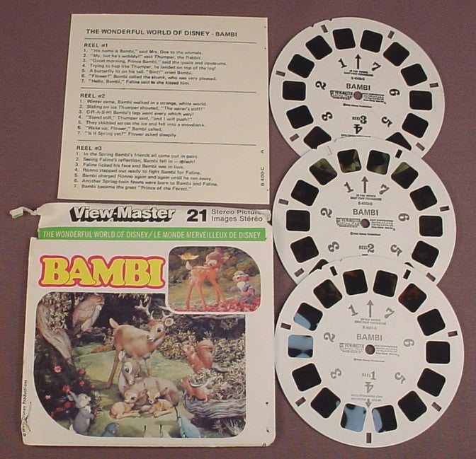 View-Master Set Of 3 Reels, Wonderful World Of Disney Bambi, B 400-C, B400-C, B 4001-C, B 4002-C, B 4003-C, B4001-C B4002-C B4003-C, With The Packet & Insert, GAF, Viewmaster