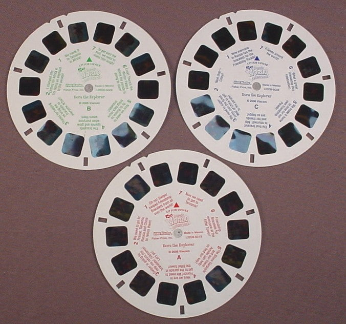 View-Master Set Of 3 Reels, Dora's World Adventure, Nick Jr, L2208-6019 L2208-6029 L22086039, 2006 Viacom, Fisher Price, Viewmaster