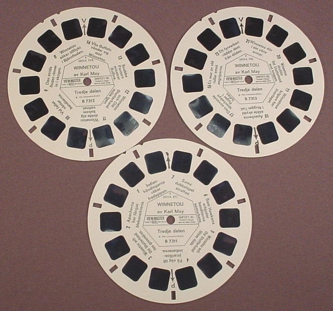 View-Master Set Of 3 Reels, Skiva Ett Winnetou, Av Karl May, Tredje Delen, B 731, B731, B 7311, B 7312, B7313, B7311 B7312 B7313, 1965 Constantin Riatto, Viewmaster
