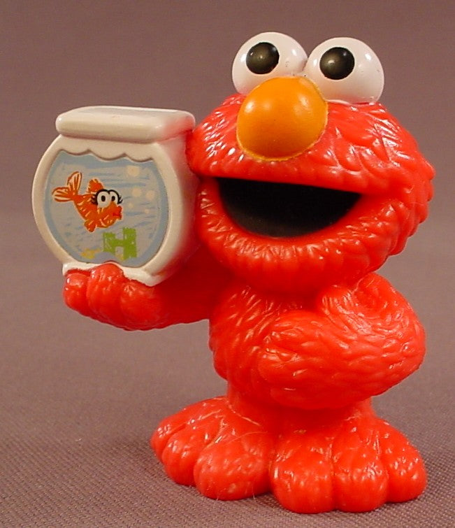 Sesame Street Workshop Young Elmo Holding A Fish Bowl PVC Figure, C-082B, 2010 Hasbro 2 5/8 Inches Tall, Sesame St