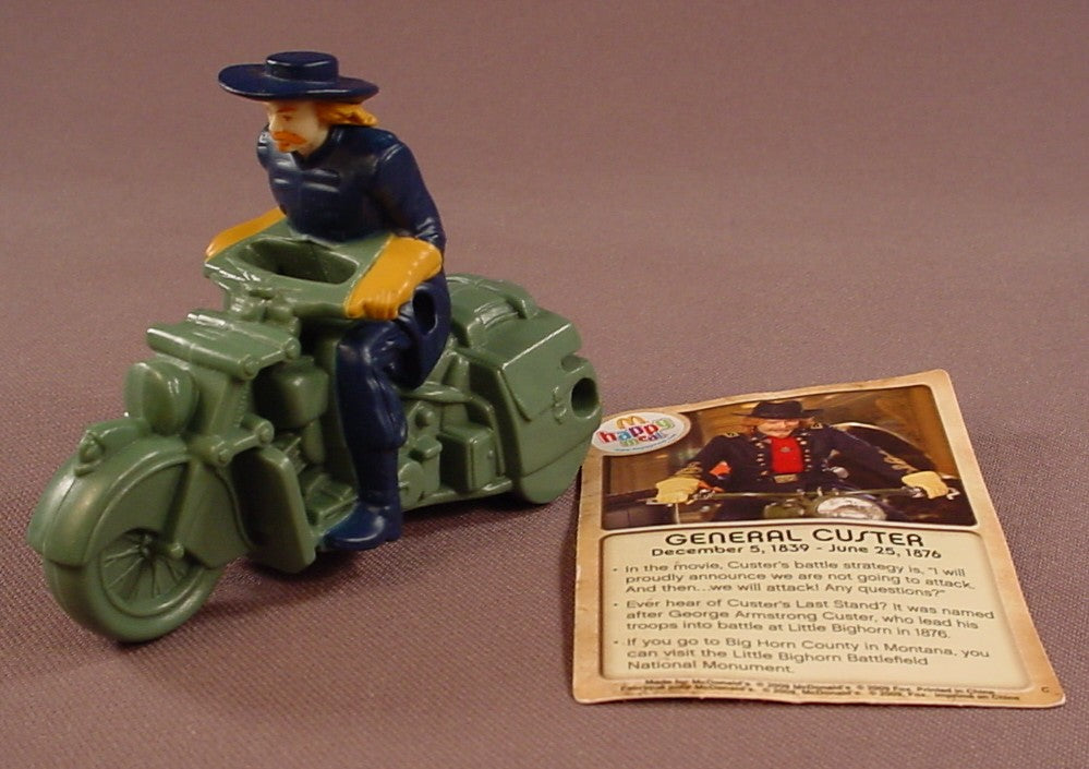 Night At The Museum Movie General Custer On A Motorcycle With A Pull Back Motor, 2 1/2 Inches Tall, 2009 McDonalds, Battle Of The Smithsonian, Push Any Card Into The Slot To Make The Pull Back Motor Work, The Card Has Creases