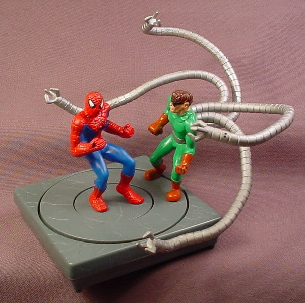 Spider-Man Vs Doctor Octopus Rolling Platform, Figures Spin Around Each Other As It Rolls, The Base Is 3 3/4 Inches Square, Doc Oc, Flexible Tentacles, Marvel, Spiderman, 2003 Decopac