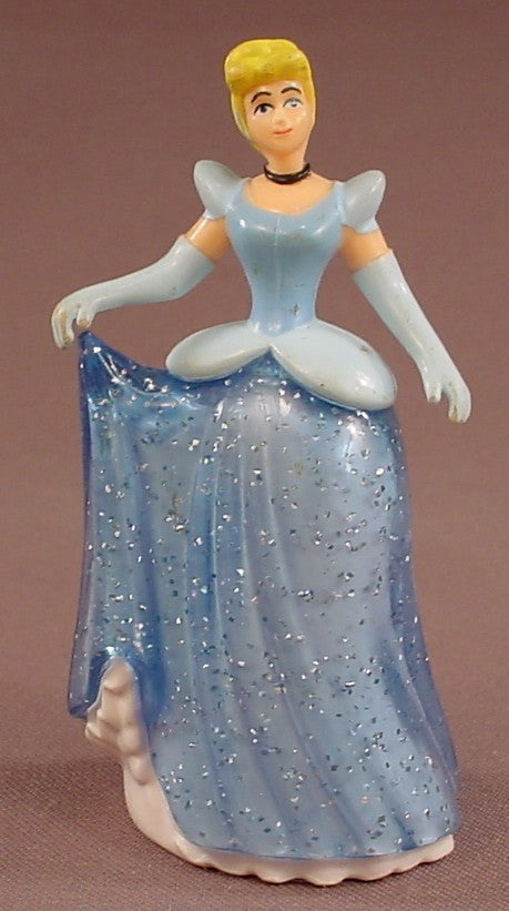 Disney Cinderella PVC Figure With A Plastic Glittery Dress And A Metal Rolling Ball In The Bottom, 3 1/2 Inches Tall