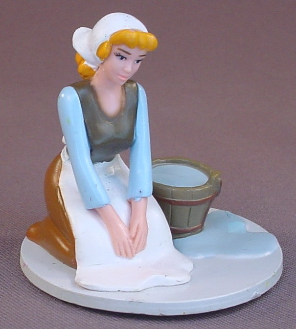 Disney Cinderella Wearing Her Work Clothes And Washing The Floor PVC Figure On A Large Round Base, Bucket Of Water, 2 1/2 Inches Tall, Figurine