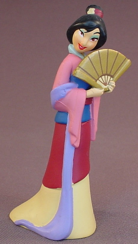 Disney Princess Mulan Holding A Gold Fan PVC Figure, Red Blue & Yellow Kimono, 3 1/2 Inches Tall, Figurine
