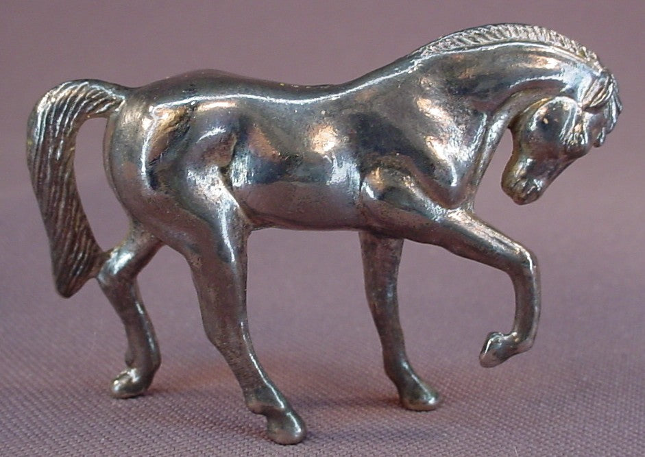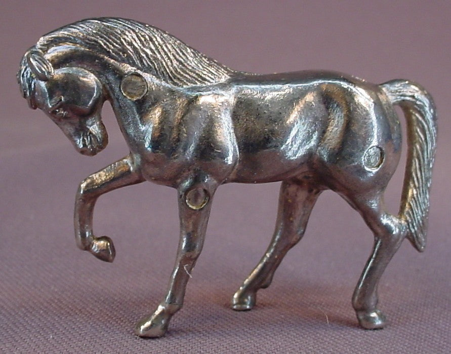 Metal Silver Horse Animal Figure, 1 1/2 Inches Tall, 2 1/2 Inches Long, No Manufacturing Markings