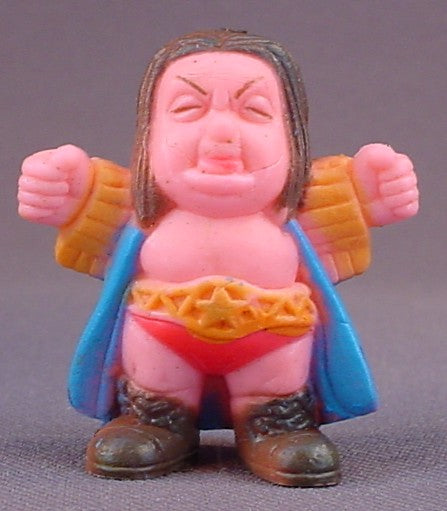 Soma Wrestler PVC Figure In Red Tights, 1 5/8 Inches Tall, Gold Belt, Blue Cape, Wrestling